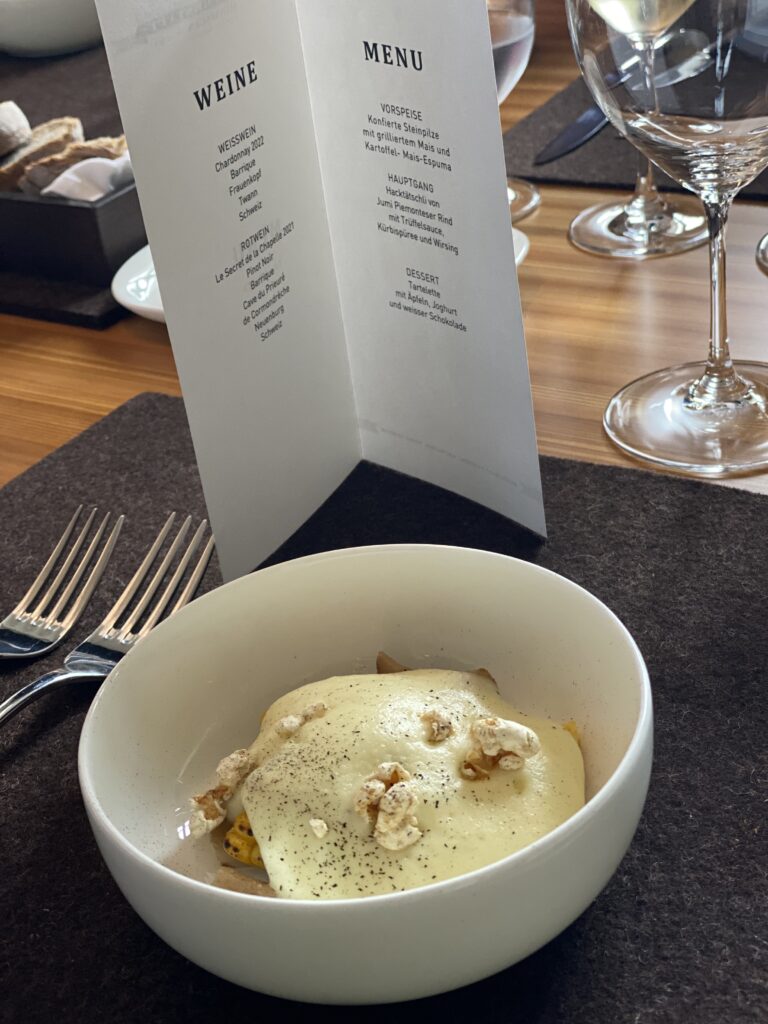 Den kulinarischen Abschluss bildete ein Drei-Gänge-Menü in der Kochwerkstatt am Bahnhofplatz, zubereitet vom USM-Privatkoch Christian Thierstein. In der ehemaligen Werkstatt von USM wurde Genuss zum Erlebnis – ein Ort, der Geschichte und Gegenwart auf geschmackvolle Weise verband.